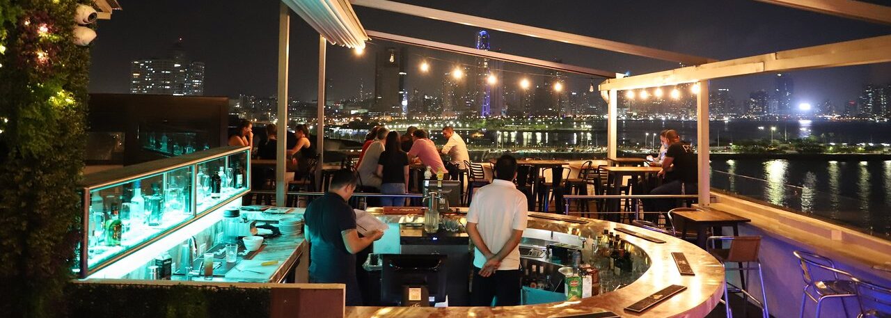 Sama Sky Lounge is one of the top rooftop bars in Panama City, offering an unparalleled experience with breathtaking views of the skyline and the bay. Located atop the Oasis Hotel in Casco Viejo, this venue is the perfect spot for sunset cocktails, live music, and an exclusive nightlife experience.